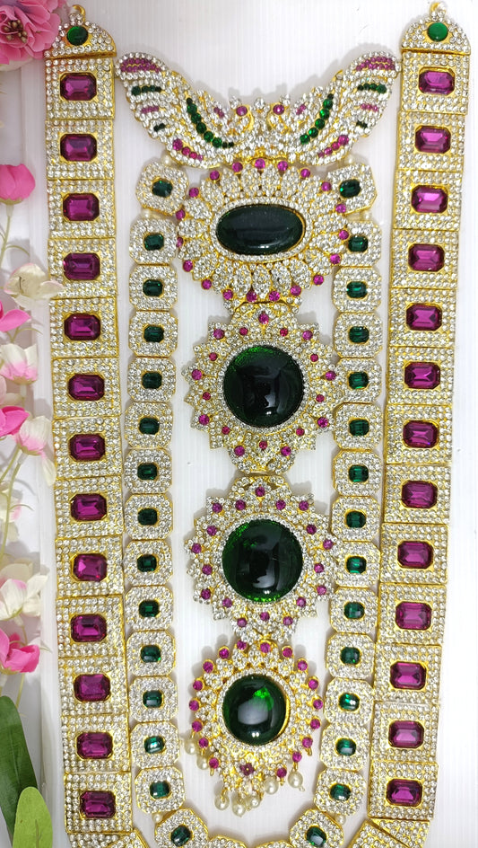 Explore our wide range of meticulously handcrafted deity jewelry, including crowns, necklaces, anklets, earrings, waistbands, and more. Made with premium materials and adorned with intricate detailing, our collections are perfect for temples, home altars, and festive occasions.