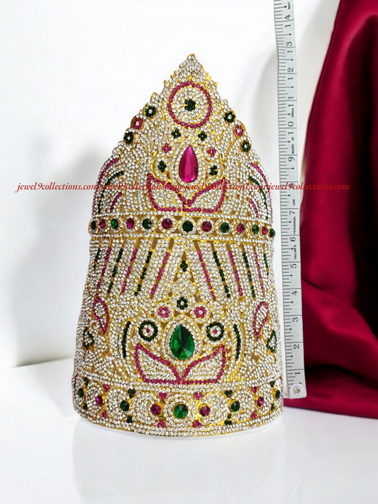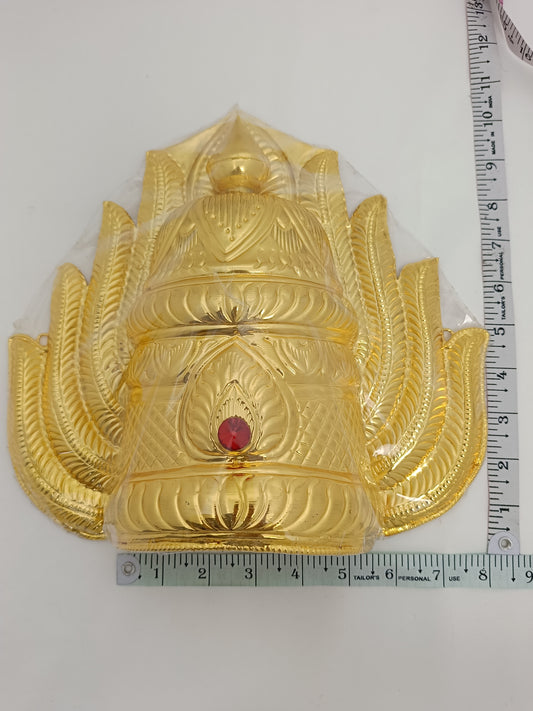 Gold Plated God / Deity Mukut / Crown / Kiritum 10.5 inch h *5.5 inch w