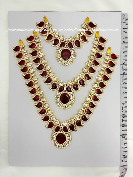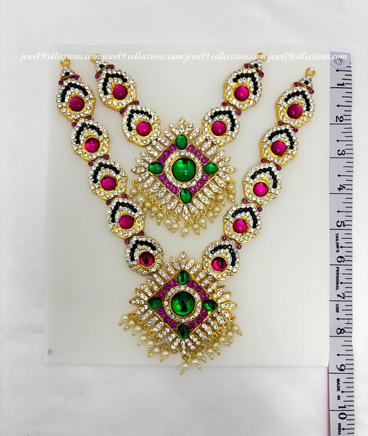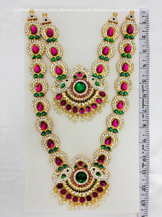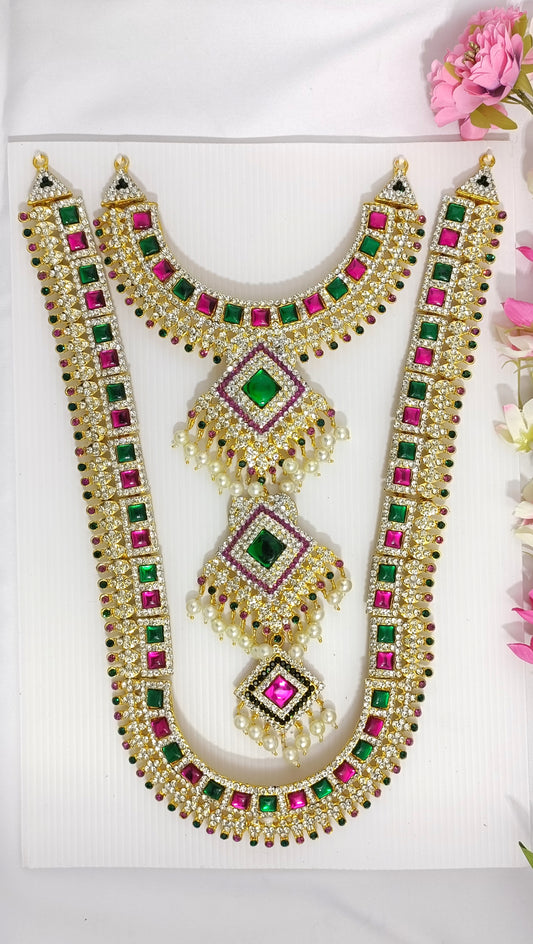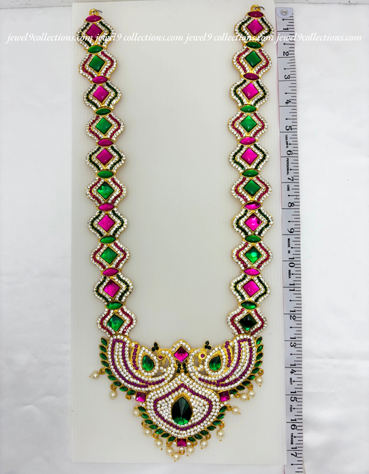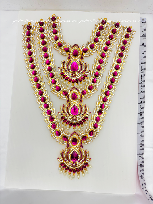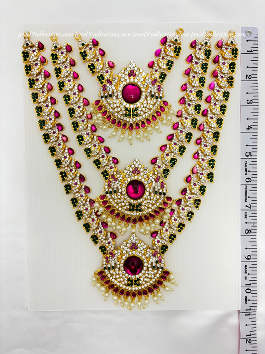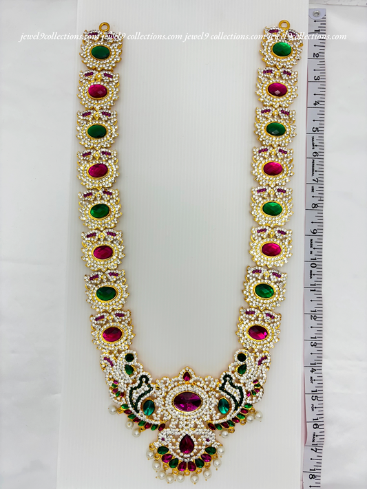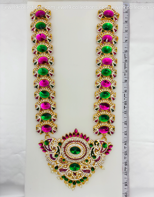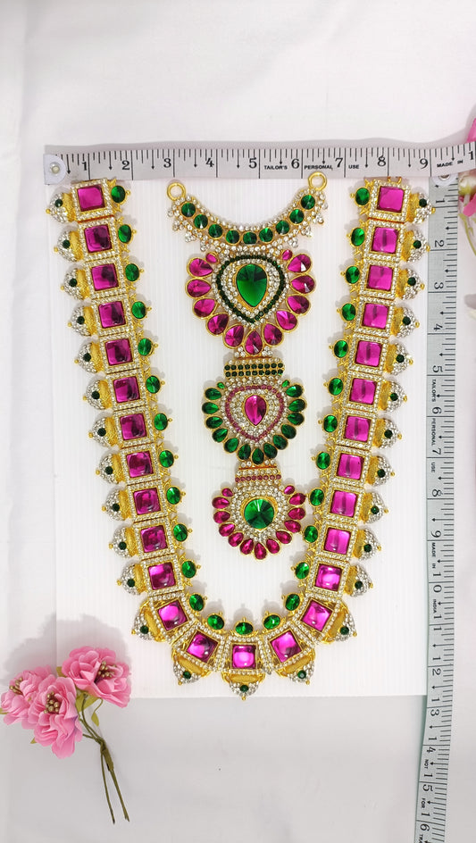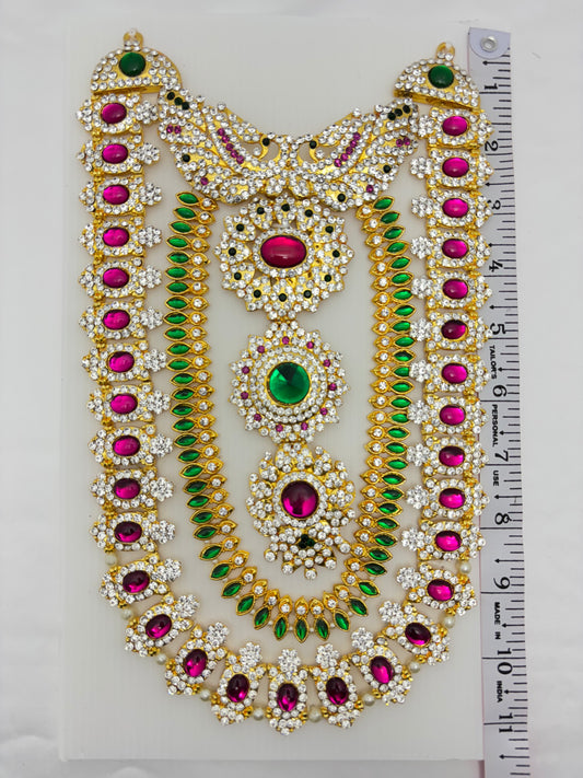 Jewelry for Varalakshmi Amma 3 steps Stone Long Necklace Durga Mata temple Haram