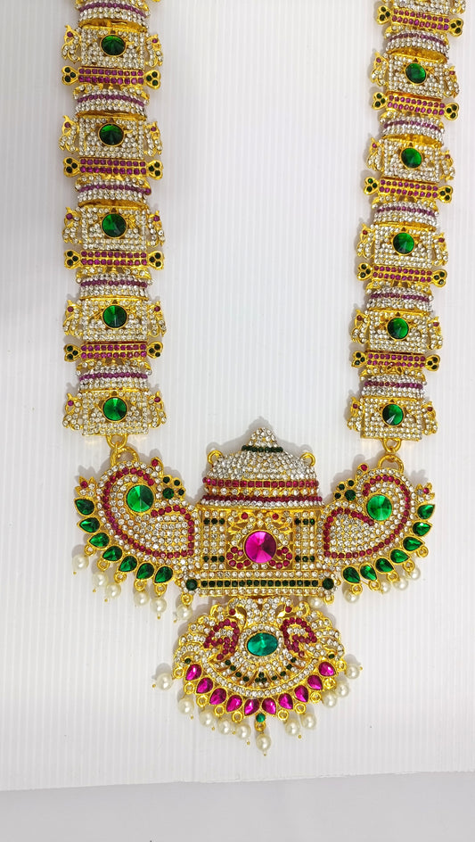 Devotees Deity Blessings Icons Long Haram Adornments Temple Deities gold plated stones mala