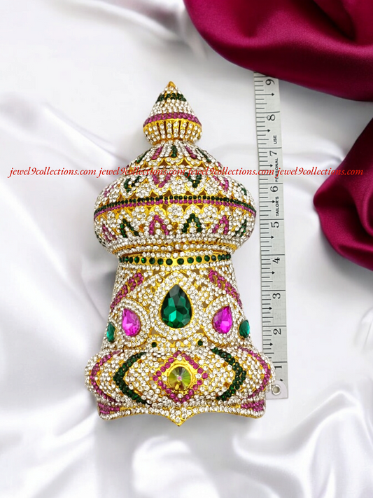 CZ & AD Stones Half Crown Kreedam for God and Goddess Height 8 cm - Wide 4 cm