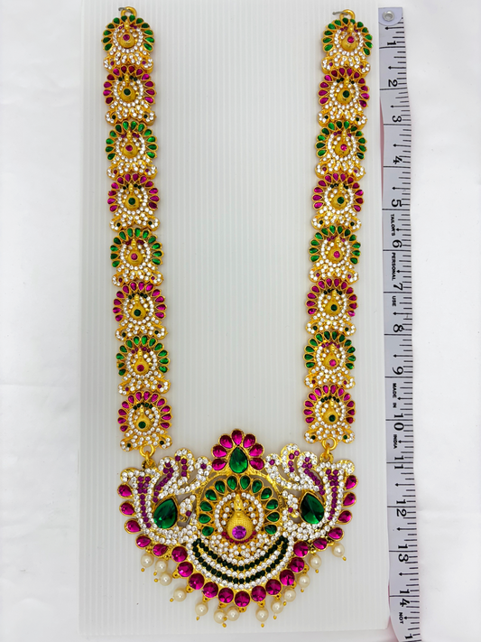 Red stoned long 9"inch necklace for deity