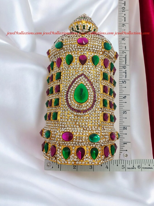 Mukut,Kreedam Half Round White Ruby Emerald Stones Crown for Hindu God Statues