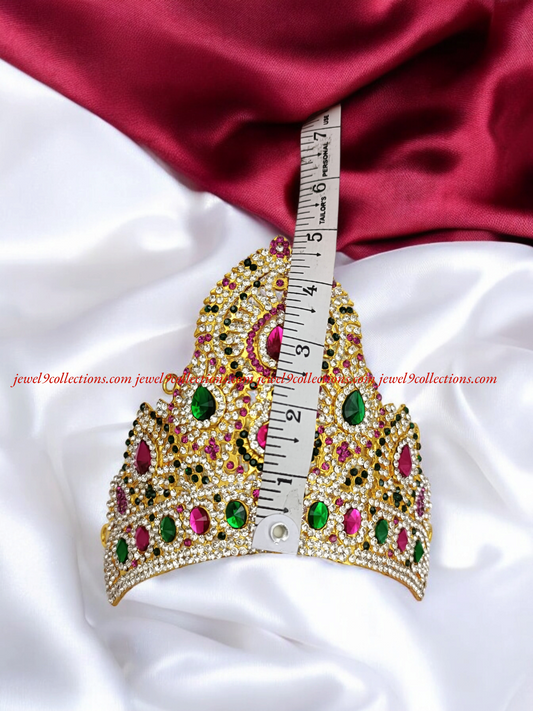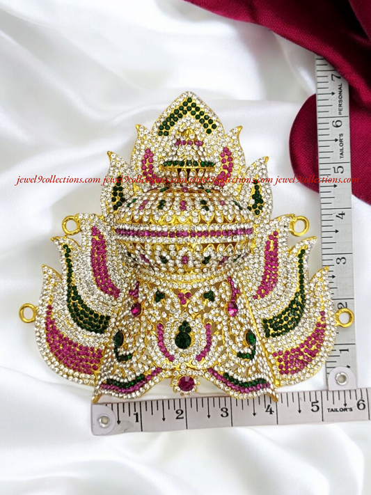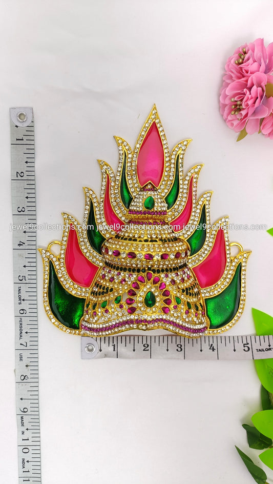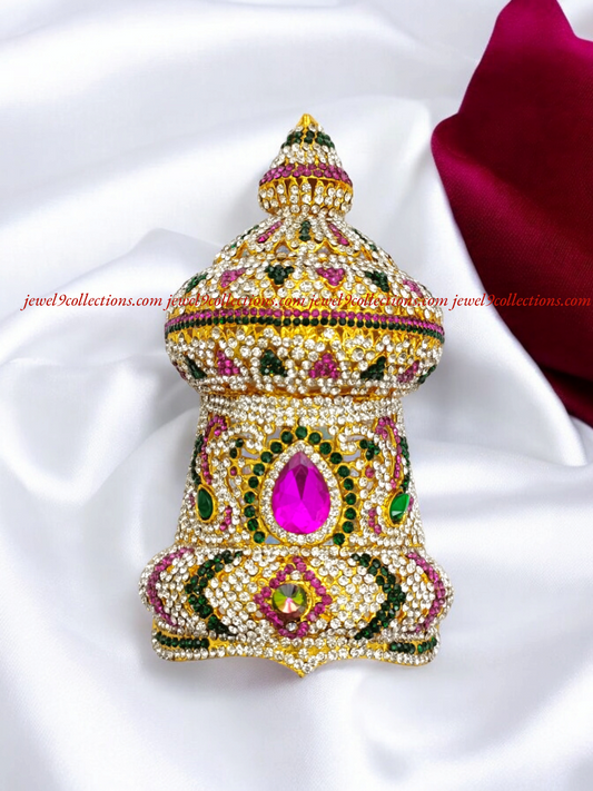 Amman Kireedam-Divine Crown With White,Green And Pink Stones