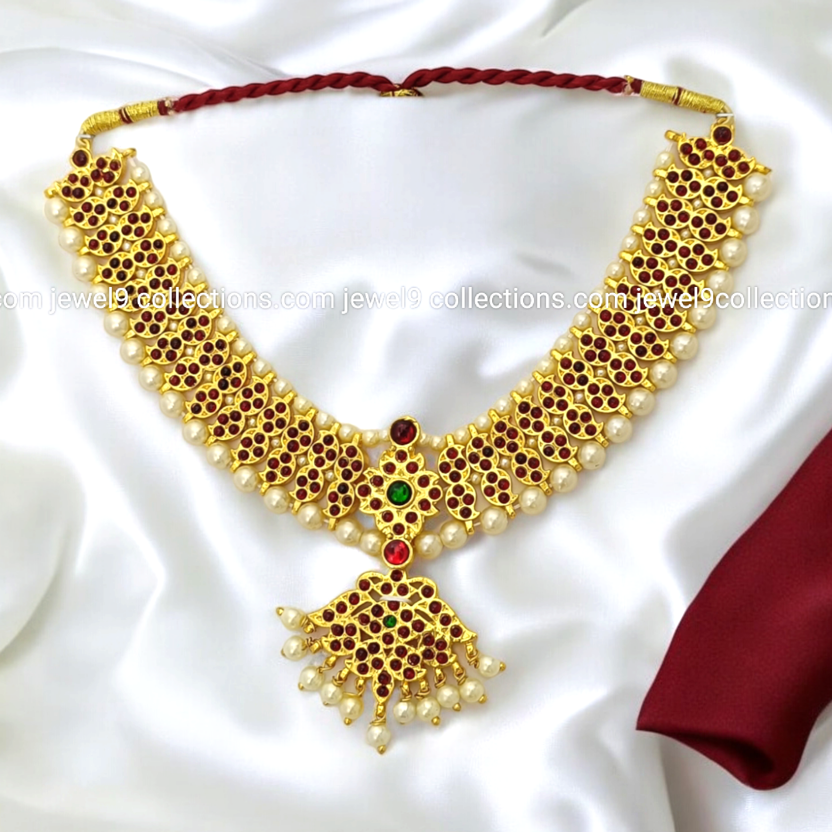 Introducing the Elegant Bhartanatyam Shorts Necklace, a stunning addition to any traditional attire. Handcrafted with intricate details, this necklace exudes elegance and grace. Its shimmering design and comfortable fit make it the perfect accessory for any Bharatanatyam performer. Elevate your dance performance with this beautiful necklace.
